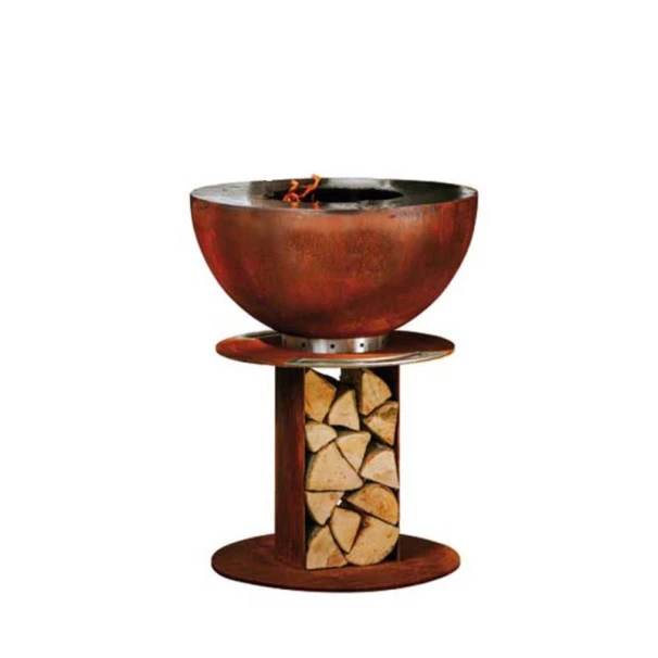 - Le rangement à bois complète parfaitement la conception brute et originale du braséro