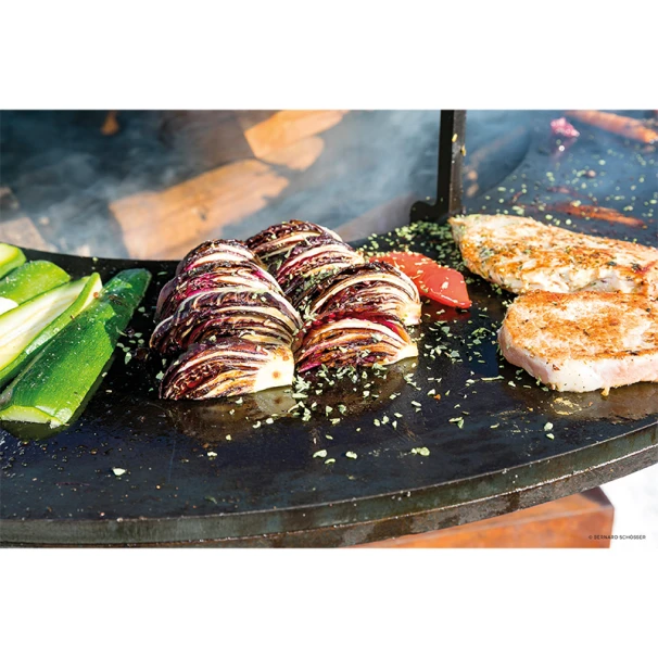 Le braséro plancha Ofyr 85 est non seulement polyvalent mais également pratique. Le braséro se transforme en plancha à bois à l’heure du repas ou en barbecue avec la grille de cuisson en acier.