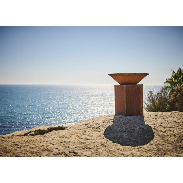 - Son socle et sa vasque en acier corten auto-patiné permet une grande résistance aux intempéries