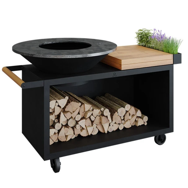 Sa plaque de cuisson en acier noir entourant le braséro permet à la plancha OFYR de vous offrir une surface de cuisson incomparable. On peut cuisiner chacun de son côté ses propres préparations tout en étant ensemble, ou bien confier la tâche à quelqu’un qui n’aura aucun souci à gérer les différents plats grâce aux différentes zones de cuisson.
