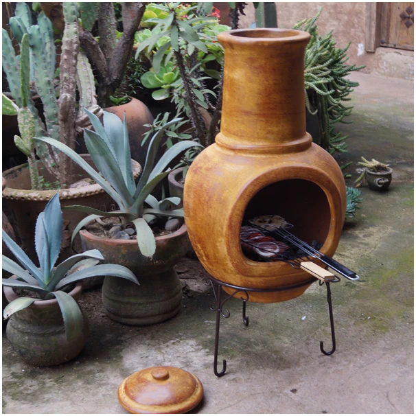 En achetant cette cheminée mexicaine en terre cuite réfractaire et pieds en fer forgé, vous aidez de petits artisans du Mexique. Il y a un côté éthique à cet achat.