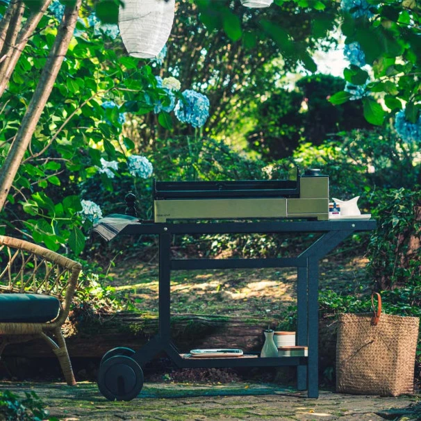 Cette table roulante de chez Forge Adour est compatible avec les planchas 45, 60, et 75. La desserte vous permettra de déplacer votre plancha à gaz en toute simplicité. Vous disposez également d’un espace de travail conséquent et d’un compartiment pour y poser votre bouteille de gaz.