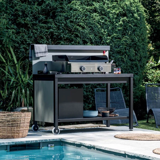 Cette table roulante crédence de chez Forge Adour est compatible avec les planchas 45, 60, 65, 75 ou encore 80. Cette table vous permet de déplacer facilement votre plancha à gaz et vous offre également une surface de travail conséquente.