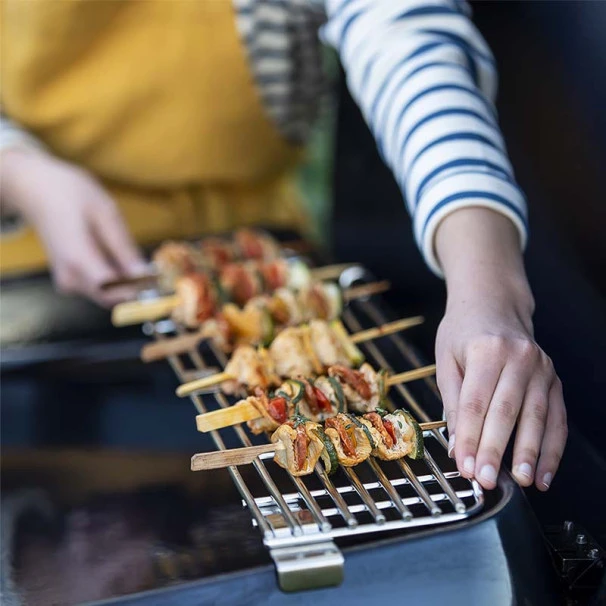 Cette étagère en inox est à poser sur les rebords de la plaque de cuisson de votre plancha Eno 75 ou 80. Elle sera accompagnée de deux poignées, vous évitant de vous brûler lors du service de vos grillades. Rien de plus simple pour un repas de qualité !
