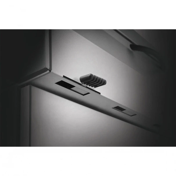 Pour plus de style, les poignées de porte et de couvercle sont chromées.