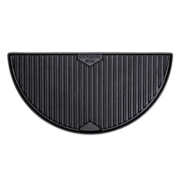 Cette plaque demi-lune reversible en fonte haute qualité se positionne aisément dans votre Kamado The Bastard taille L. Ses 2 faces permettent de choisir entre une plaque de cuisson plane et une face nervurée. Cette face nervurée permet de mariner des viandes tout en laissant le liquide couler entre les stries.