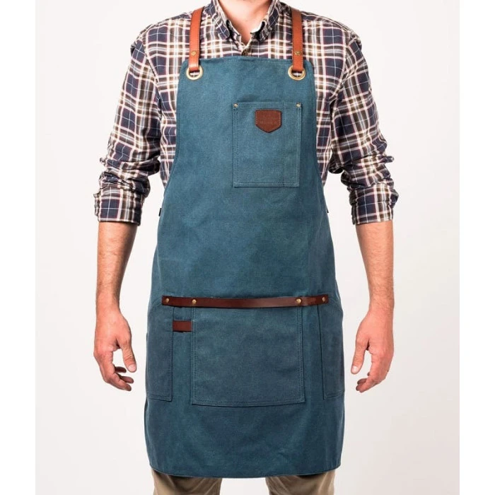 Vous vous demandez ce qu’est une toile waxée ? Cela signifie que le tissu a été ciré pour résister davantage aux tâches et autres agressions. Ce dernier est donc plus rigide, durable et offre un aspect vintage. En effet, la toile cirée se patine avec le temps, ce qui apporte un côté unique au tablier.